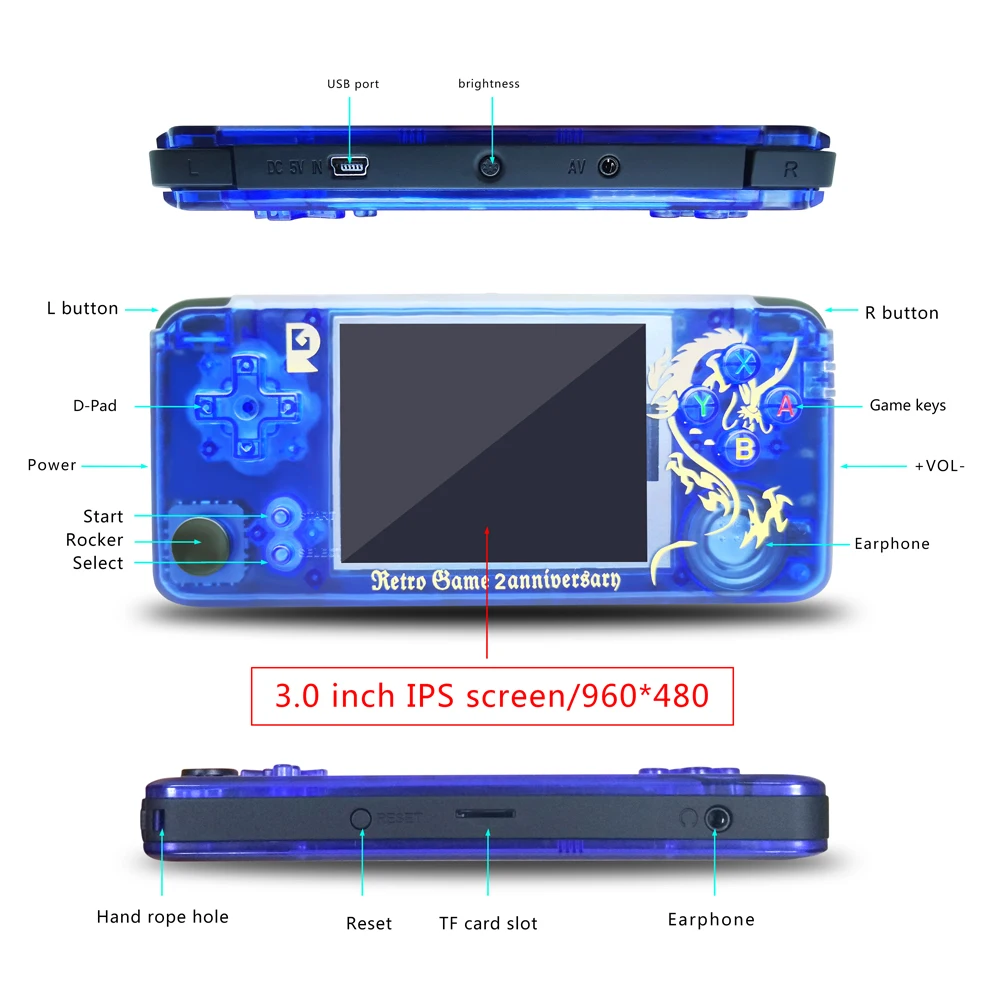 | ANBERNIC Rs-97 New Limited Edition Retro Game Plus Video game 3000 Games Omron rs97 Family Gift consola retro PS1 IPS Emulator |