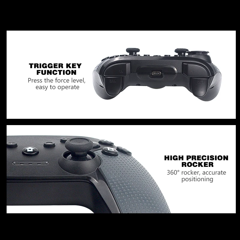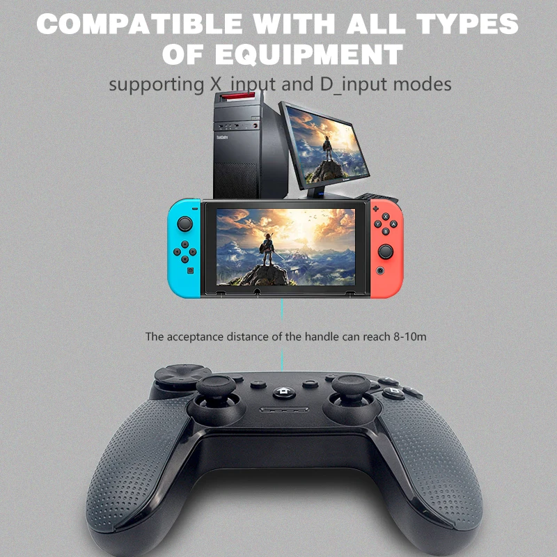 DATA FROG's latest version of the gamepad, do you feel very retro with childhood taste? I guess the answer must be! Our design philosophy starts from the trend and trend of the times, and widely accepts the opinions of customers to introduce this control handle for everyone! This wireless (bluetooth) controller is compatible with the Nintendo Switch console, with TURBO function, supports motor double vibration, is connected with Switch host, and is also compatible with PC host (XP system and above), can be applied to various game control, so that you Experience the immersive feeling during the game. 1.Not only compatible with PC (X_input and D_input modes are also supported).2.All buttons and the corresponding functions of the original handle to the motor switch (sensor function is available for selection) 3. Provide four red LED indication functions.. Provide 16 function key input keys to support TURBO function.direction key disc and cross free could to remove and replace , you can install different colors keys and make you play more smoothly The ergonomic design and lightweight construction make it comfortable to play even for long periods of time. Strong vibration , will give a greater degree of expression and increase the feeling of immersion for your. human design sense ultra strong and easy to use . also will bring more exciting games , relax yourself during leisure time 1* Game controller 1* Charging cable A: The correct procedure is to charge the controller first, because the battery may be depleted due to long-term shipping.Q: Will the gamepad have the Bluetooth function? A: Yes friend , through Bluetooth, the handle connects to the host to the switch. Connection to PC host via USB cable in shutdown state, performs the function of X_input mode and D_input mode.Q: Will the gamepad have a vibration function? A: Yes friend , the gamepad have strong vibration , Every hit will make you immersive and in actual combat .Q: How to connect the gamepad? A: For the first time, press the HOME key for 3 seconds to start and enter the pairing. LED 1-4 flash indicates that pairing is successful. The corresponding channel lamp assigned by the host switch is long and bright.Turn it on again and press the HOME key to boot and enter the back link. The LED slowly flashes 1-4, indicating successful matching. The corresponding channel lamp allocated by the host is long and bright.Q: How to connect to host nintendo ? A: 1) Connect to the Host Switch via BluetoothA. Connect the handle to the host for the first time:Open the host switch. In the host main menu interface, touch controllers → Change grip / order with your finger to enter pairing mode host interface Press LR on the controller, ignore LR; Press the "B" button "HOME" for 2 seconds to open the handle and enter the pairing mode. The LED2 on the handle starts to blink rapidly. When single or multiple LEDs are always on, the handle is paired successfully with the host, press the A button.2). Connect the handle to the host one more time:Press and hold the HOME button for 2 seconds to open the handle, the handle is automatically connected to the host, and then press the A button to operate.3). wrist waking:When the handle is in sleep state, briefly press the HOME button to wake up the handle, the handle and the host automatically connect back, and then press the A button to operate.Q:How to connecting the PC ? A: Hold down "+ " key actions and connect to PC with USB cable. When the LED flashes 1 and LED 3 stops, they stay in the second light, and it is long and bright, indicating that they have entered Dinput mode. Long Press the HOME key for 3 seconds and switch to Xinput mode for the third light, and it is long and bright. Q: About getting the distance of the gamepad? A: The wireless distance can reach 8-10M, depending on the environment.Q: About the battery charging and usage time A: Built-in 500 mAh lithium battery, charging time 2.5 hours, can be used continuously for about 12-13 hours after full charge (different games, this will be different)Q: Is there any guarantee from us? A:We will tested all items are carefully before shipping , we are to ensure they work perfectly. if the product has any problem when you receive it, pls feel free to contact with us first.Q: About Shipping ? A:The normal delivery time is 15-60 days (depending on your choice of logistics channels) . If you have not received more than this time , please contact us . we will follow the expedition and come back to you as soon as possible with an answer. our goal is customer satisfaction!Note : If you are in Brazil , the delivery time is 25-90 days , no matter what kind of shipping way, because of the custom.Good quality and good service 1) Regarding the shipping method and delivery time data, only applicable to our store products are not suitable for other sellers. Please understand that!2) If you are satisfied with our products, please make a 5 star comment and share the details of the photo display. If you are not satisfied with the order, please contact us within 24 hours, we will contact you until the problem is solved.