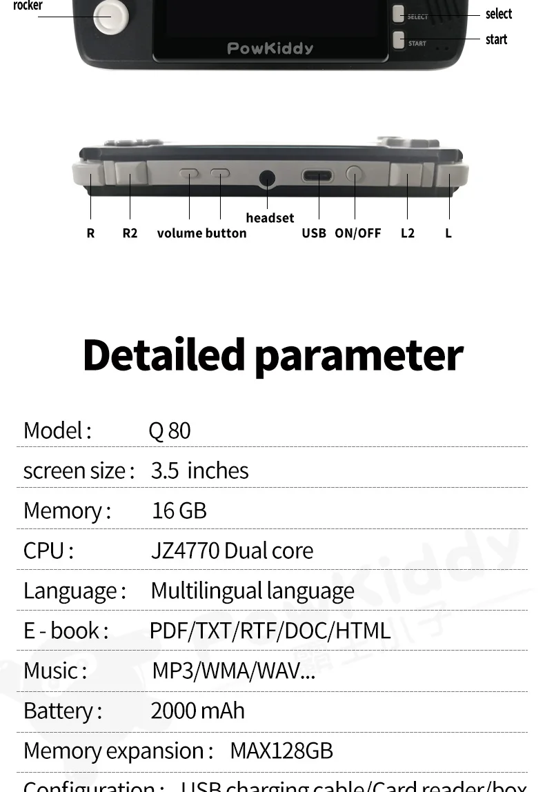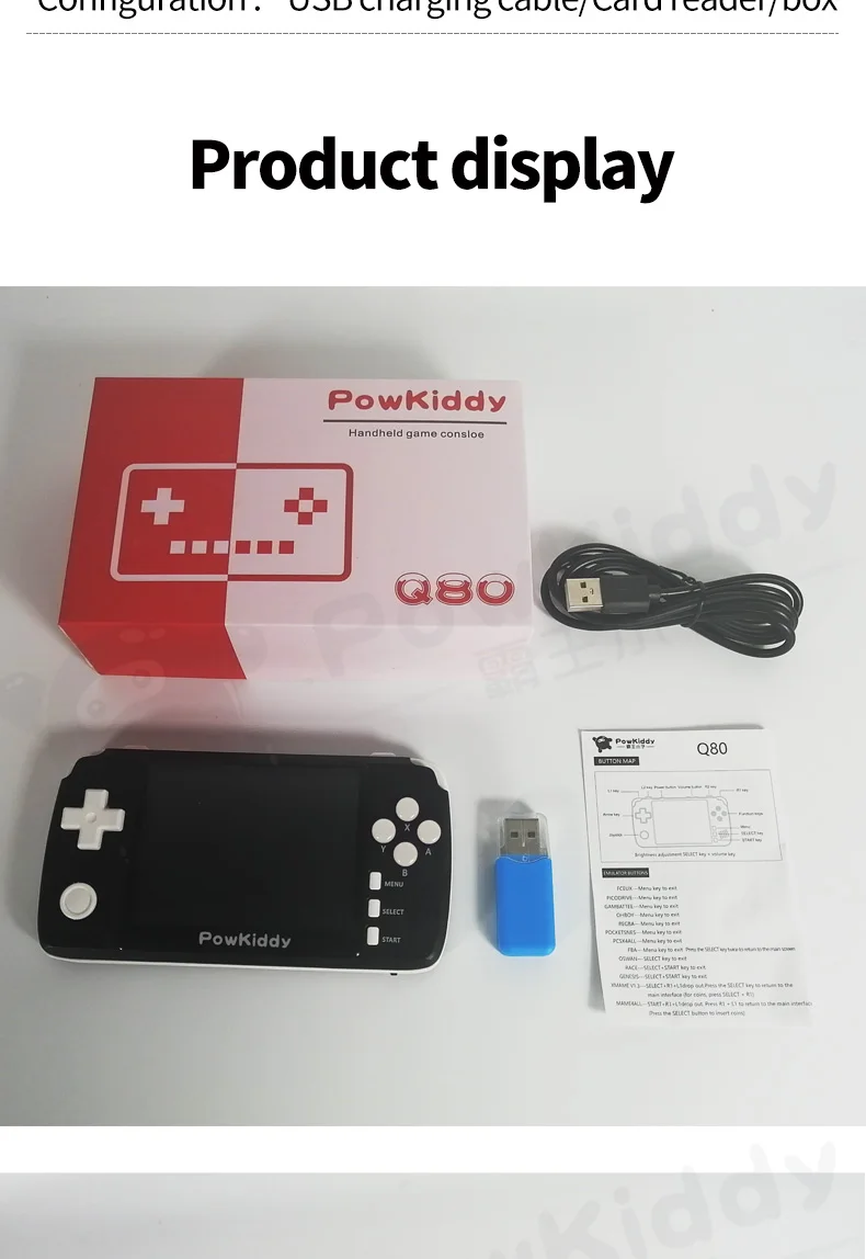Powkiddy q80 Retro video Game Console Handset 3.5 IPS Screen Built-in 1000+Games Open System PS1 Simulator 16G Memory NEW games