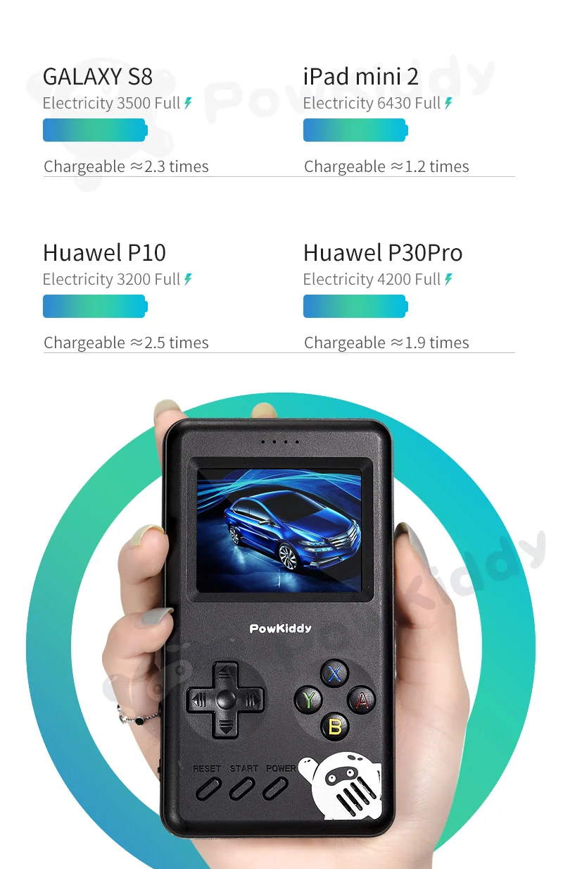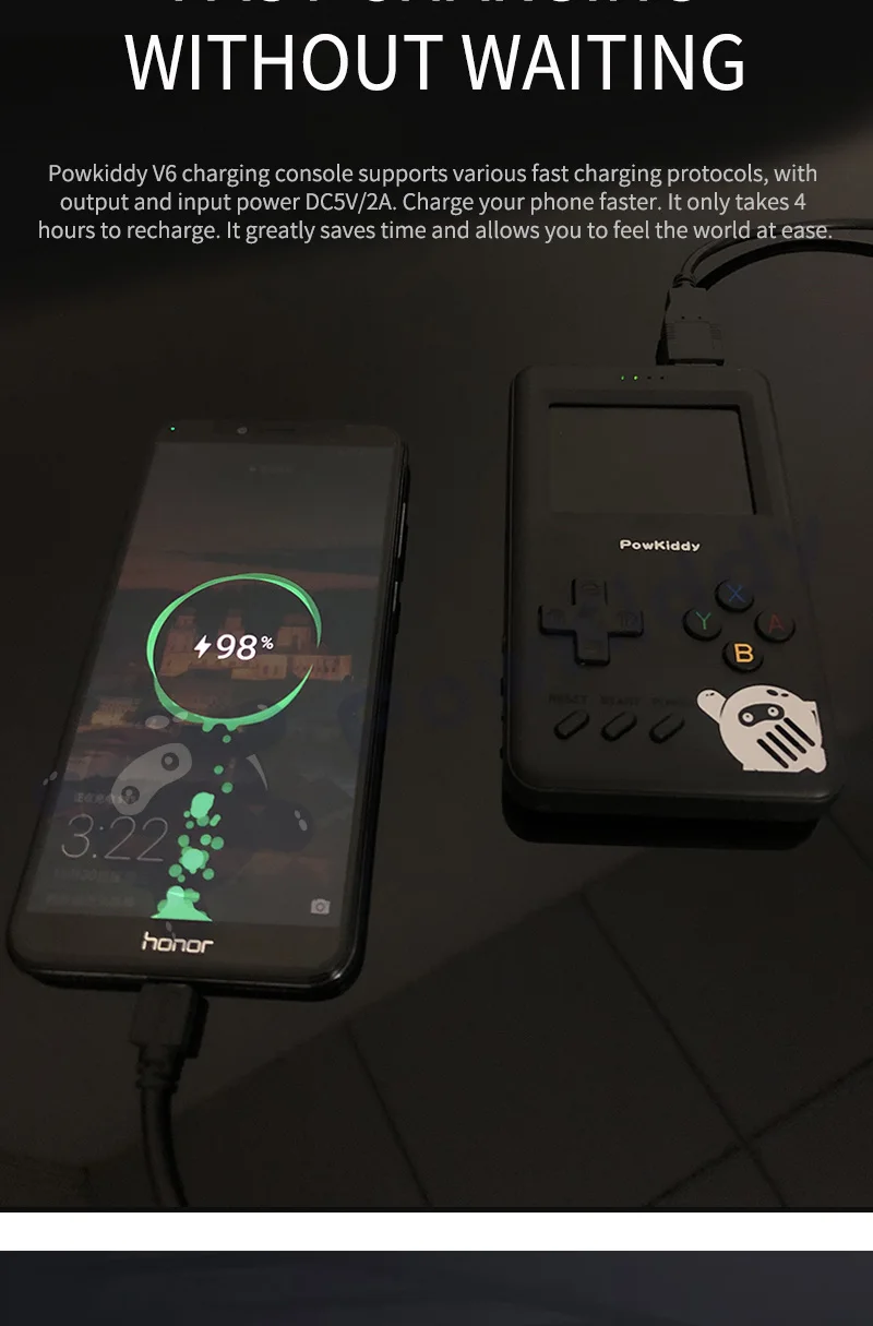 | POWKIDDY V6 Commemorative Edition Handheld Game Console with Mobile Power 10000ma Polymer Battery Core Built-in 500 8-bit games |
