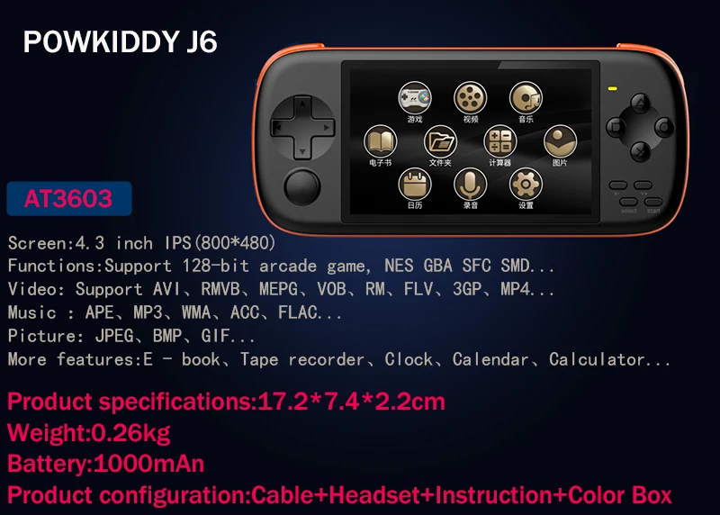 The best product you are looking for is "POWKIDDY J6 handheld game console 4.3 inch IPS HD screen 1000 mA 8GB simulator arcade mame Built - in 2300 games Children's Gif". This product is available and ready to be purchased. Get attractive discounts every time you shop in our store (aliexpress.com). Aliexpress also provides a coupon of $ 3 for the first buyer to shop there. don't forget to bookmark our store page so you can go shopping again anytime..