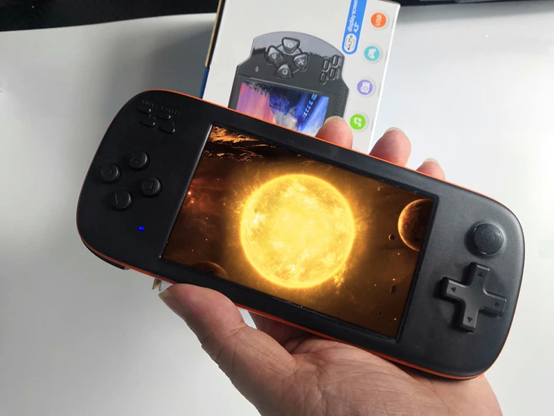 POWKIDDY J6 handheld game console 4.3 inch IPS HD screen 1000 mA 8GB simulator arcade mame Built - in 2300 games Children's Gif