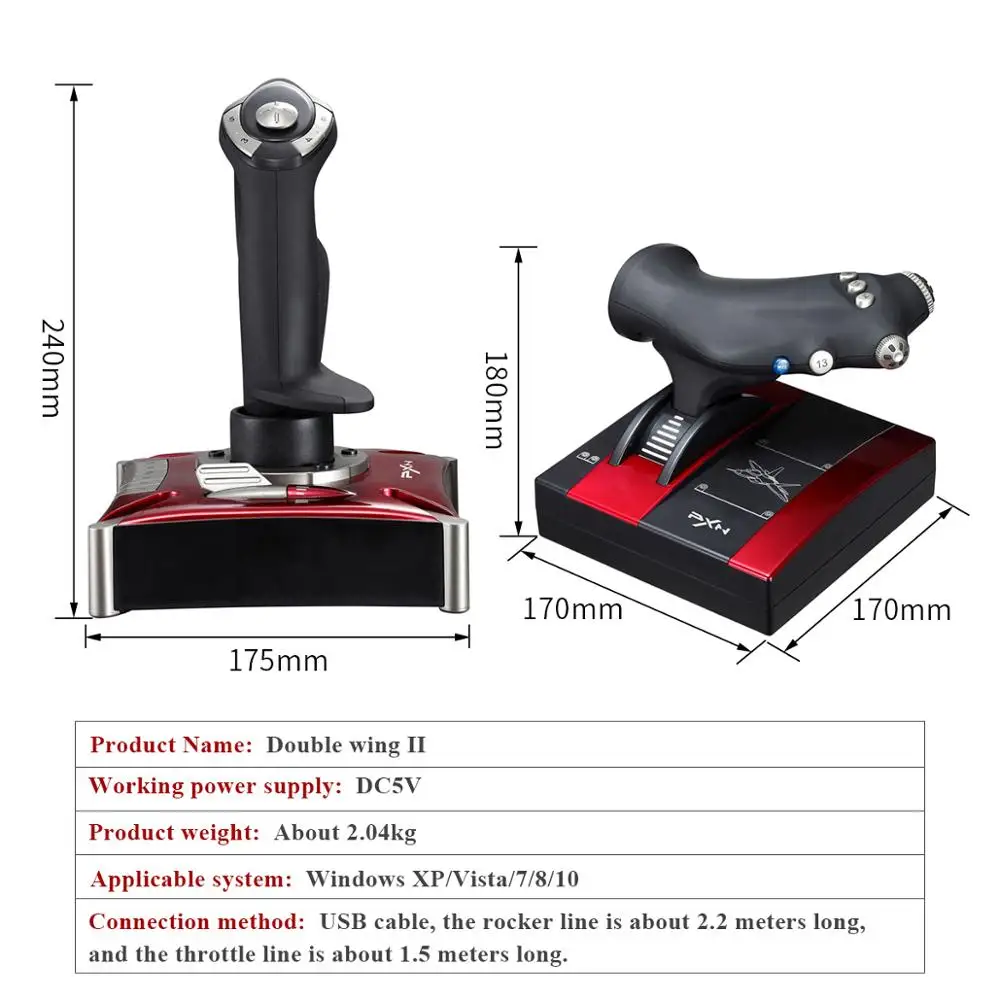 Compatible: For PC Win XP/7/8/10Product: Flight Controller JoystickBrand: PXN-2119II Power: DC 5VConnection: USB CableColor: RedPackage weight: 2.5 kgProduct Size(L x W x H): 36cm x 19cm x 25cm (14.17in x 7.48in x 9.84in)