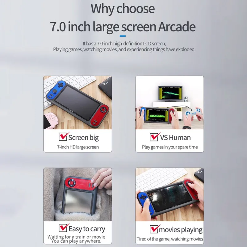 | RS-17 Portable Retro Classic Handheld Game Console 7.0 Inch HD Screen 8GB Game Player Support TF Card Expansion |