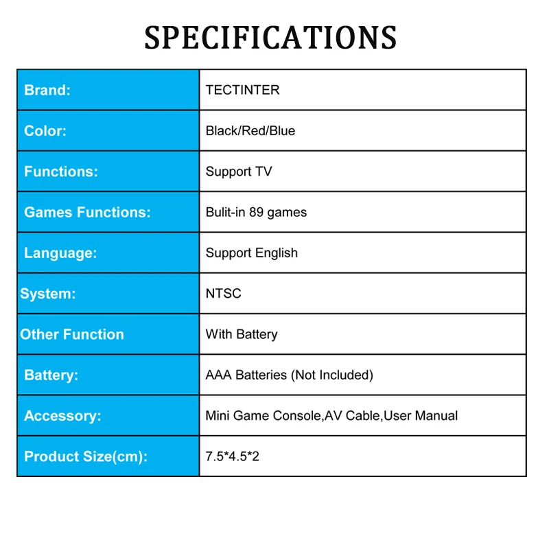 The best product you are looking for is "TECTINTER 8 Bit Mini Video Game Console Players Build In 89 Classic Games Support TV Output Plug Handheld Game Console". This product is available and ready to be purchased. Get attractive discounts every time you shop in our store (aliexpress.com). Aliexpress also provides a coupon of $ 3 for the first buyer to shop there. don't forget to bookmark our store page so you can go shopping again anytime..