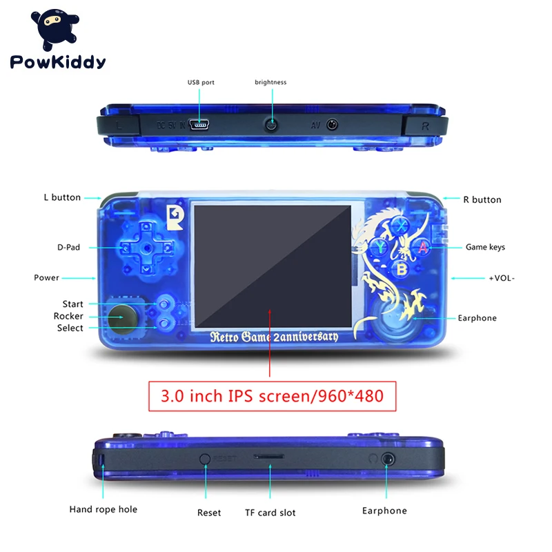 | POWKIDDY Q9 Rocker IPS Screen retro game China Dragon Open TONY System Handheld Game Console 48G Built-in 3000 New Games |