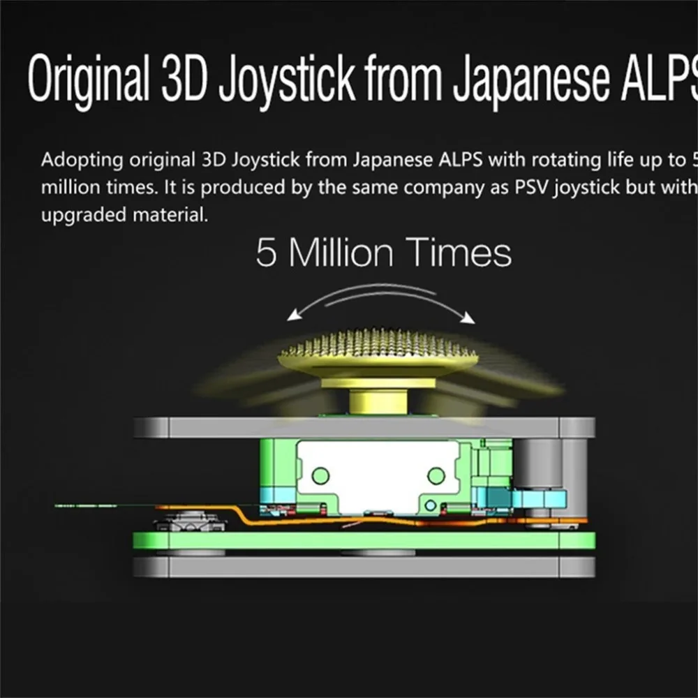 The 5 million button stroke life, feedback is clear, moderate intensity, joystick manipulation precision.