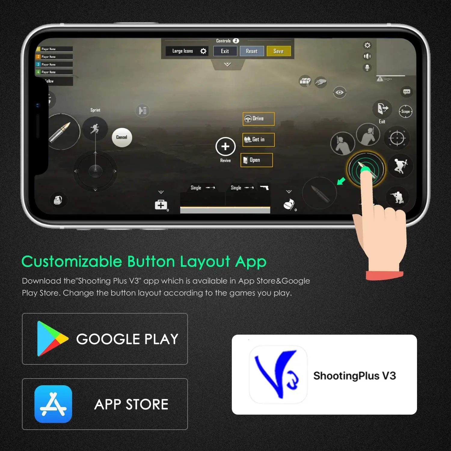 You need download the "ShootingPlus V3" APP from Google Play and App Store. And then operate according the user manual to create the keys of the keyboard and mouse in the mobile games and make the keys coincide with all virtual keys of the game.SPECIFICATION