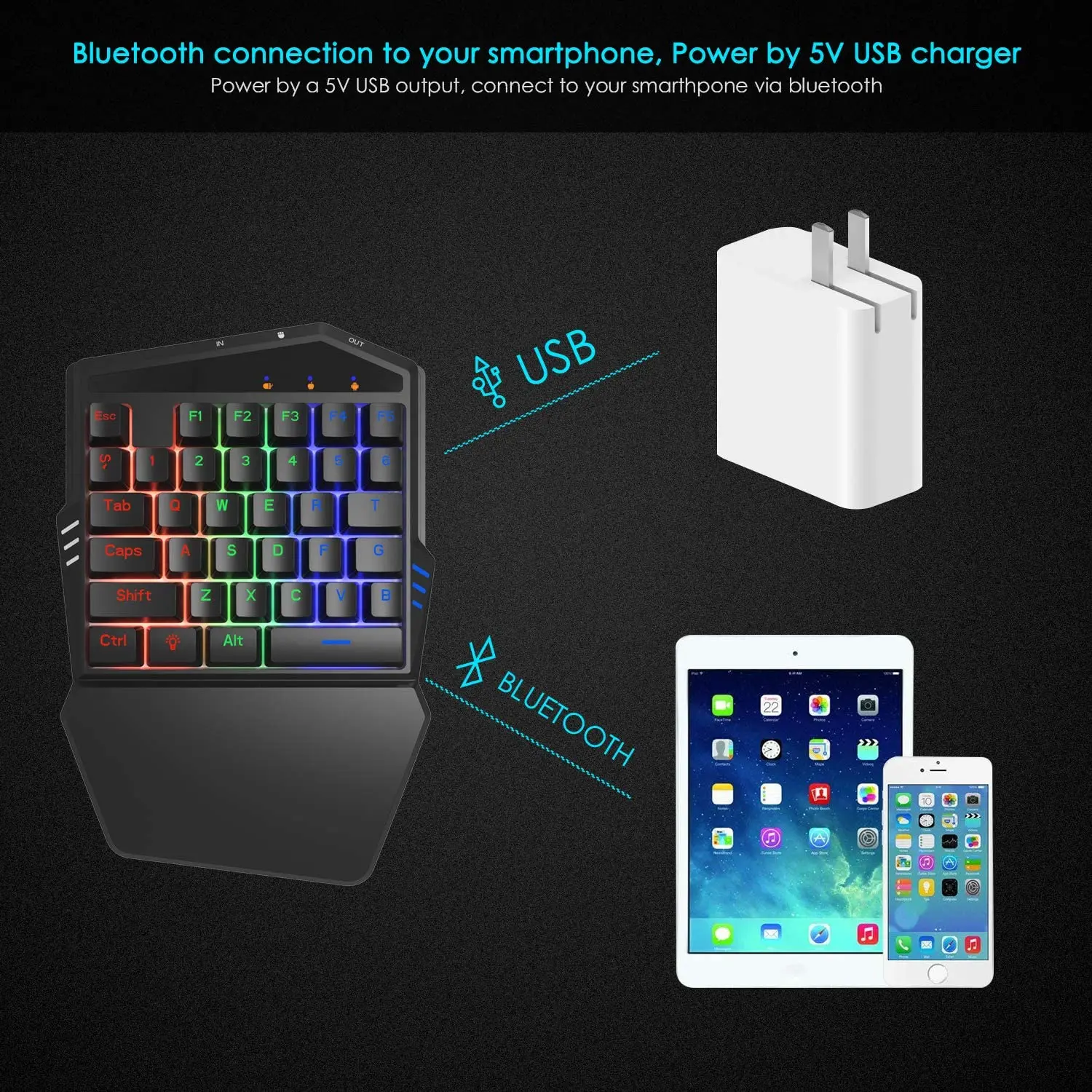The keyboard powered by 5V USB charger and connect to your smartphone or tablet by bluetooth. The mouse is wired that connect to the USB port on keyboard.CUSTOMIZE KEYS TO PLAY MOBILE GAMES