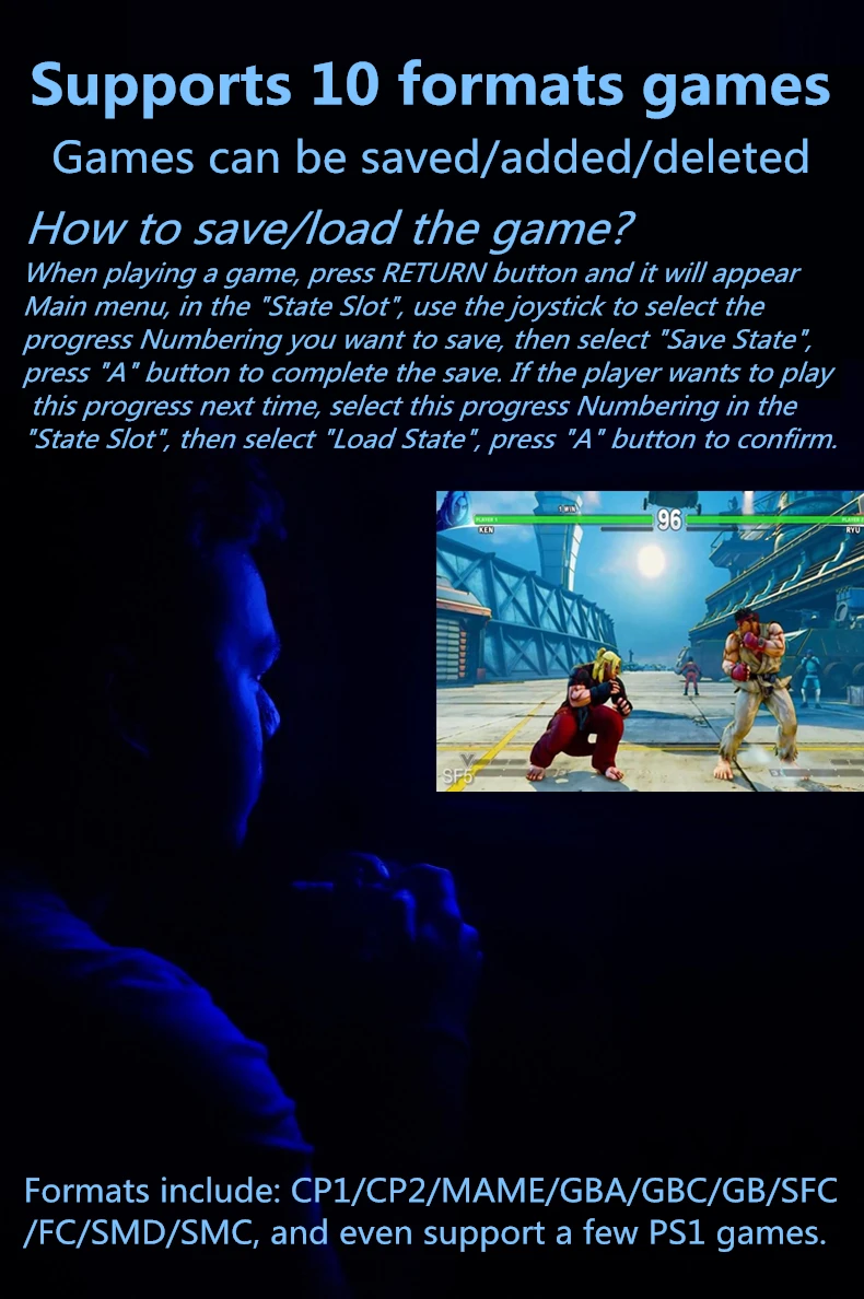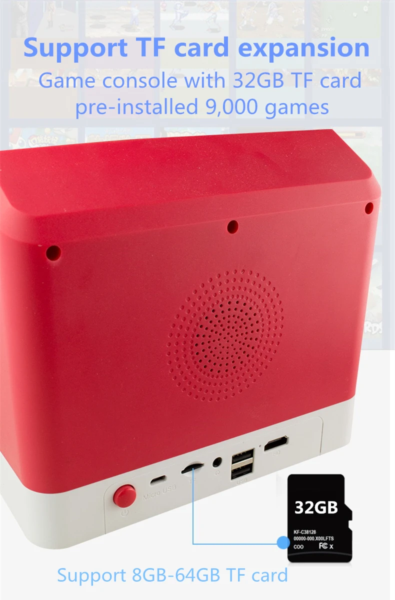 Retro mini arcade console 16GB=16GB TF game card. 5.1 inch 48GB=Host:16GB+32GB TF game card. 4.3 inch 40GB=Host:8GB+32GB TF game card.