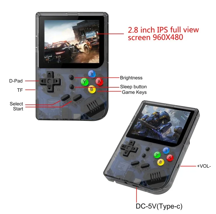| HANHIBR RG99 simulator game console 2.8 inch IPS screen 2169 games with 16GTF card supporting multi-language music video play |