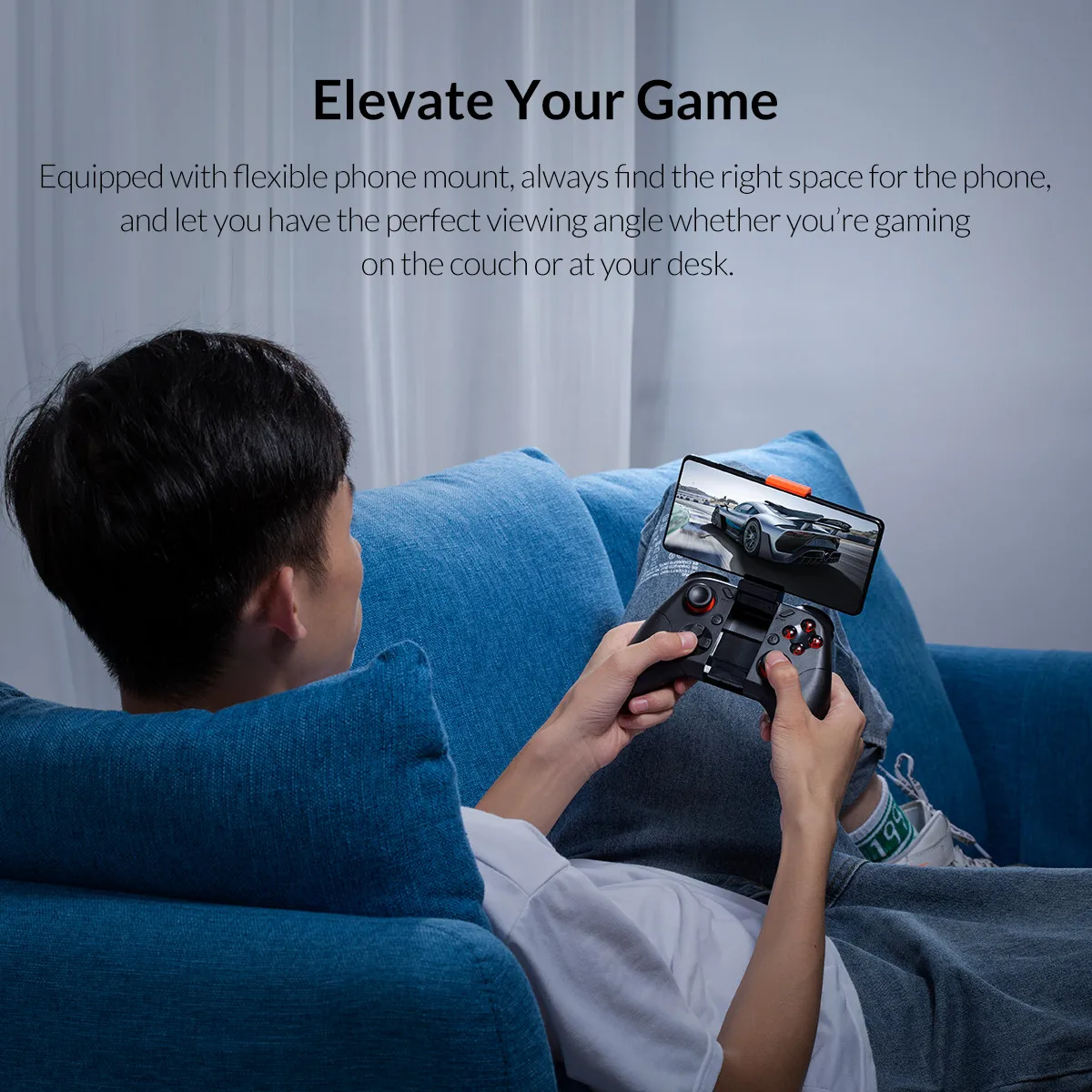 Equipped with flexible phone mount, always find the right space for the phone, and let you have the perfect viewing angle whether you're gaming on the couch or at your desk.