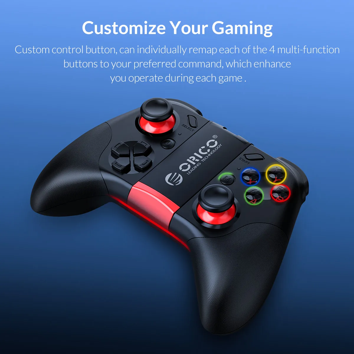 ORICO Wireless Bluetooth Gamepad for IOS Mobile Phone Joystick Game Controller For Smartphone Tablet TV Box Gamepads Handle1.Customize button,2.Ergonomic design,3.Flexible mount,4.Bluetooth connection.