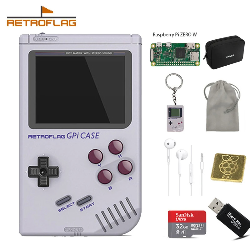 It is a case without Raspberry Pi.Kit11 x Original GPi Case1 x KeychainKit2:1 x Original GPi Case1 x Flannel Bag1 x Raspberry Pi Zero W Board1 x Cooper Heatsink (for RPI ZERO W Board)1 x KeychainKit31 x Original GPi Case1 x Flannel Bag1 x 32G Class 10 Micro SD Card1 x Raspberry Pi Zero W Board1 x Cooper Heatsink (for RPI ZERO W Board)1 x 3.5mm Eearphone1 x Aknes Bag1 x Card Reader1 x GB Keychain