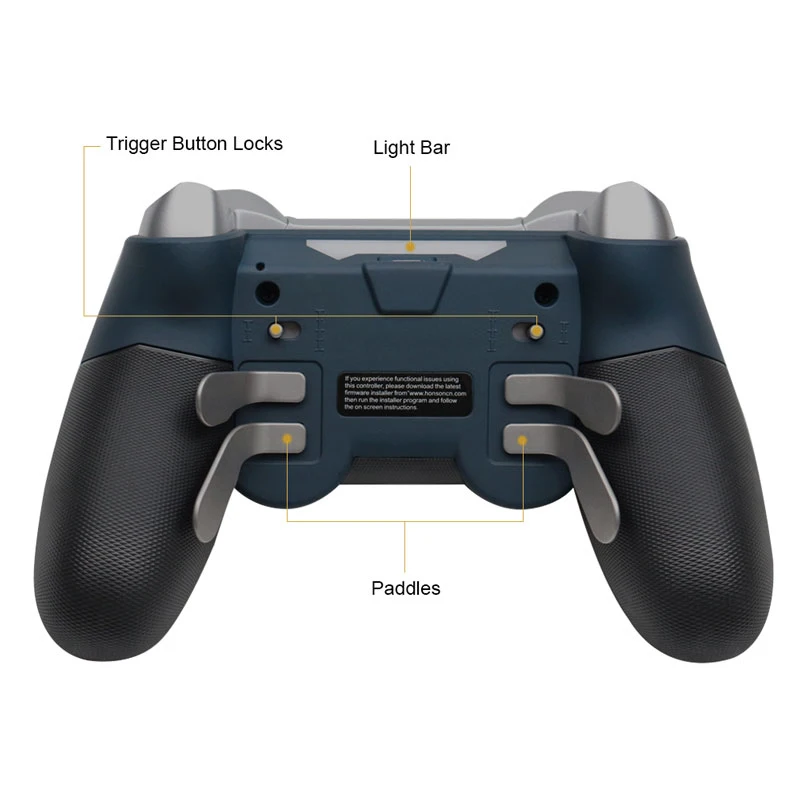 The metal trigger buttons can be locked to only push halfway, allowing for faster and sensitive button clicking with shooting game, and you can also switch it back to full-range trigger motion by click the 2 little metal buttons at the back of this for ps4 elite wireless joystick