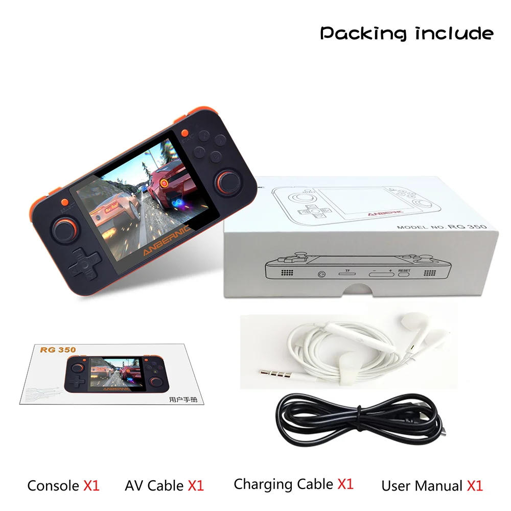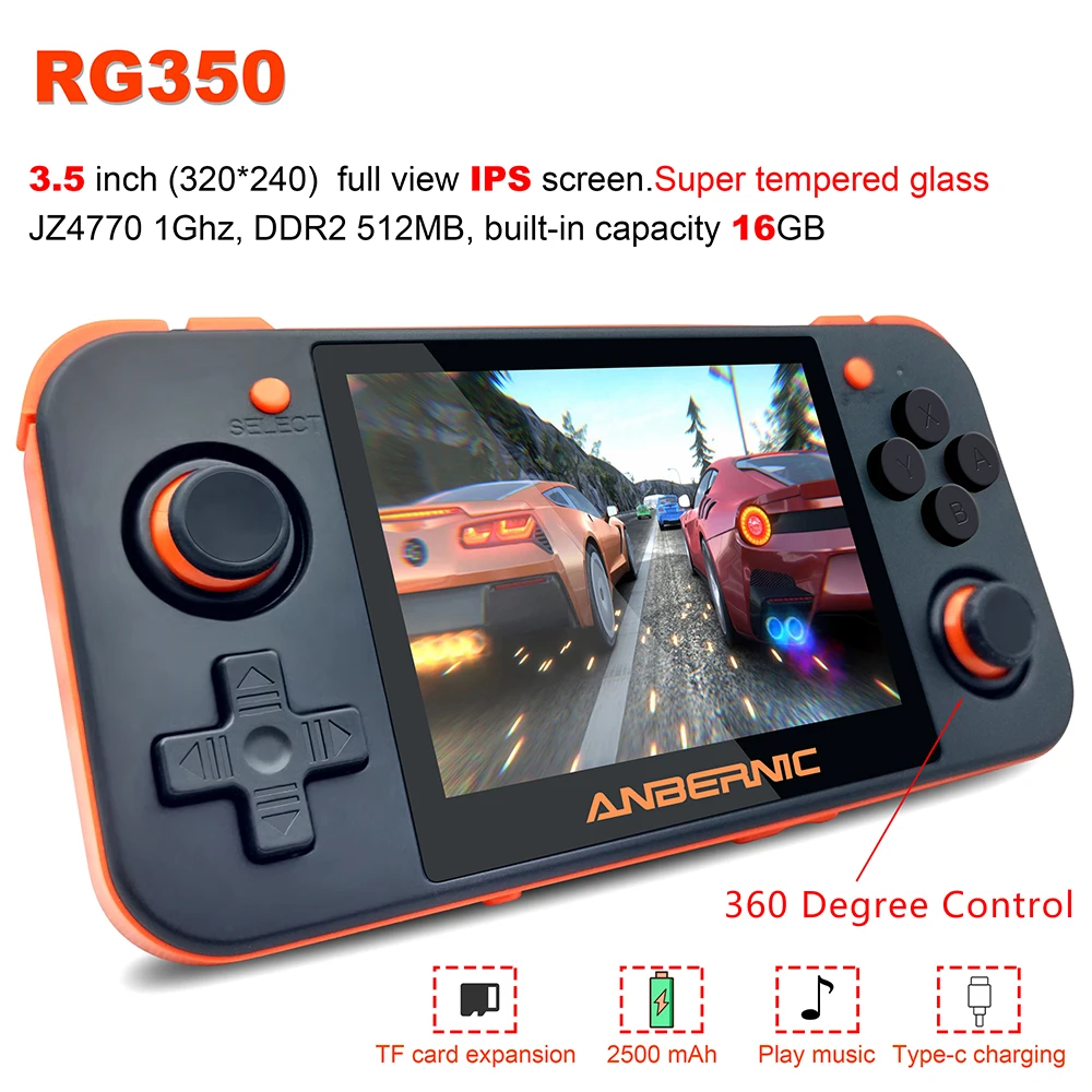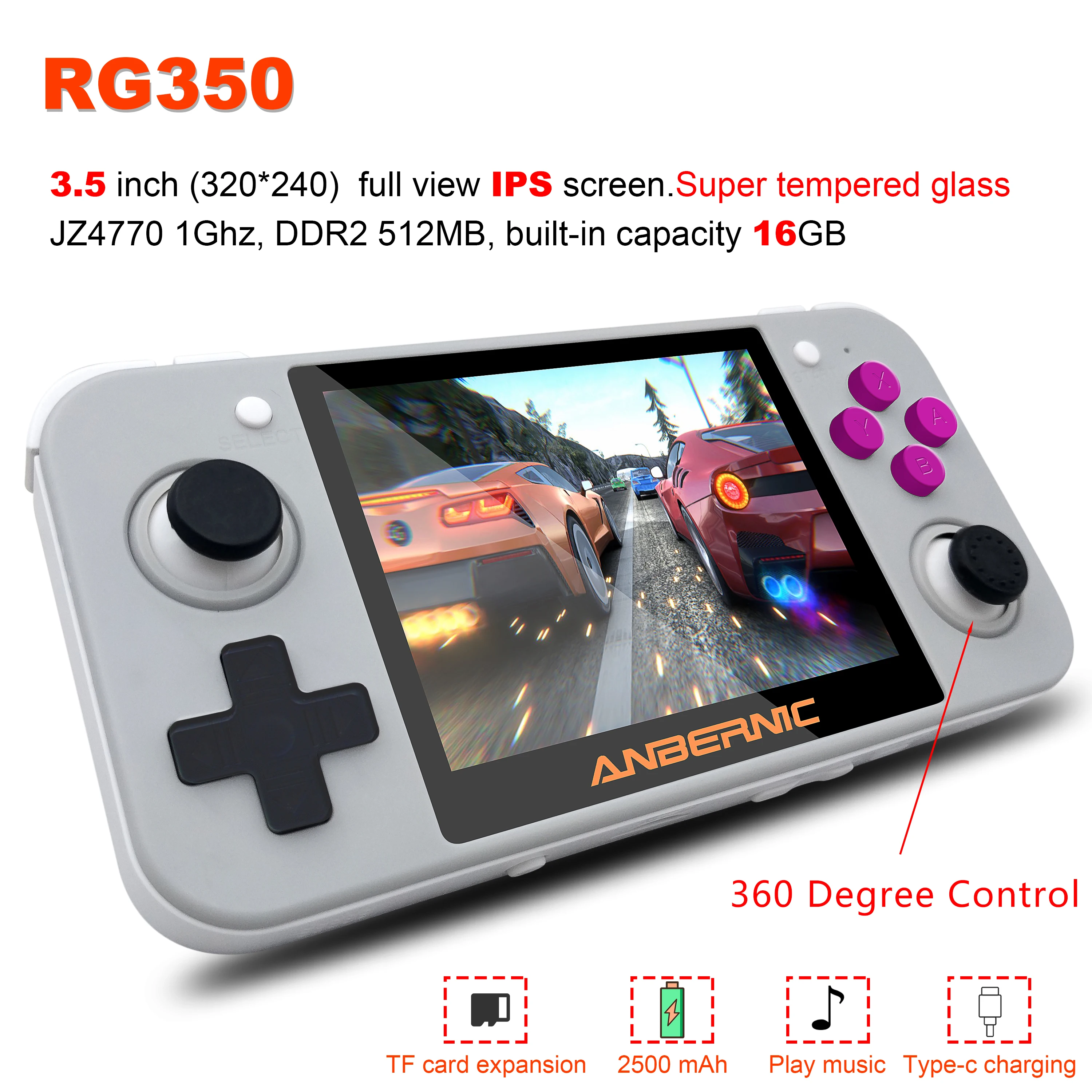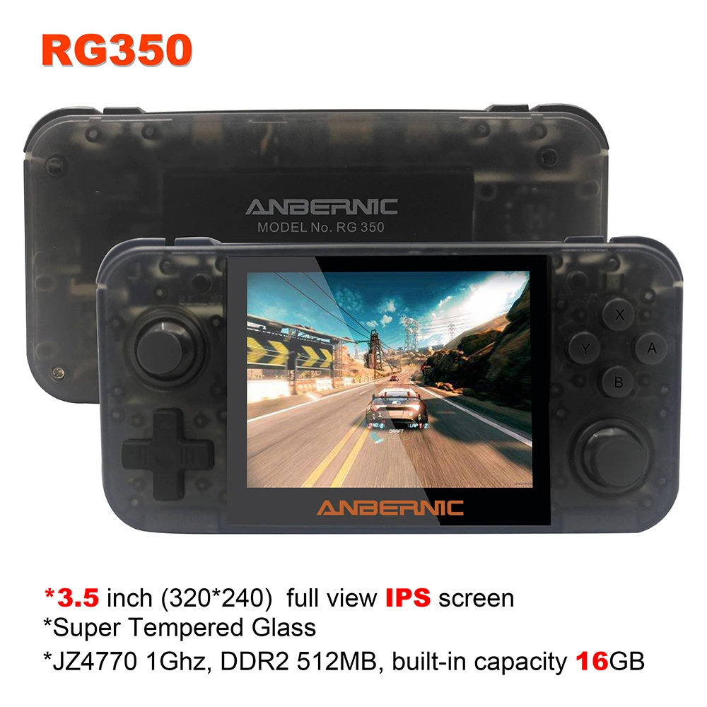 HANHIBR RG350 Linux System Retro Game Console , 3.5 inch Full View HD IPS Screen ,16GB Memory in System Card,Retro Game 350 Handheld Game Player , 128GB Card with 28000+ Classic Game Support DIY. Screen: 3.5 inch ,320*240, Full View HD IPS Screen.CPU: JZ4770 Dual 1.0 GHz.RAM: 512M DDR2Internal memory: 16GB 32GB Card can be choiced,Support tf card max to 128GB.Battery: Li-ion 3.8V 2500mAh CapacityDon't Support TV Output Now.Add the L2R2 JOG Button.Double Joystick,Switch Button Operating More Comfortable.Support Watching Movie ,Video Player and other IPK.Games in 16GB Card is 7000+, in 32GB Card is 13000+ ,in 128GB Card is 28000+. All the Games we are free to help Customer write into the SD Card.What can we do with this RG350 Console except playing games( Music,Video,E-book)? For Game Format : Perfectly support PS1-CPS1-CPS2-FBA-NEOGEO-NEOGEO POCKET-GBA-GBC-GB-SFC-FC-MD-SMS-GG-Handy-MSX-PCE-WSC-POKE MINI,Transplant Games etc .20 kinds of Games format.Customer can also download more games from website by themself.Music function: High quality speaker,support lossless music/APE/MP3/WMA/DRM WMA /OGG/APE/FLAC/WAV/AAC(including AAC-LC/AAC HE/AAC+V1/V2)and other full format audio.E-book function:Support PDF,TXT ,RTF ,DOC,HTML.Three Colors:Transparent Black , Gray , Black.