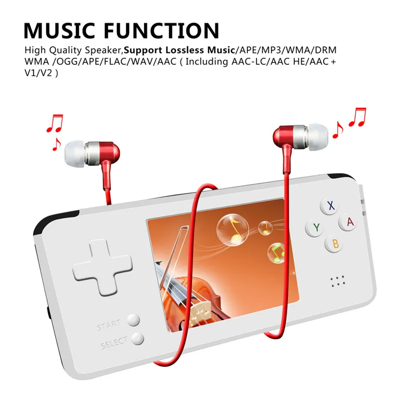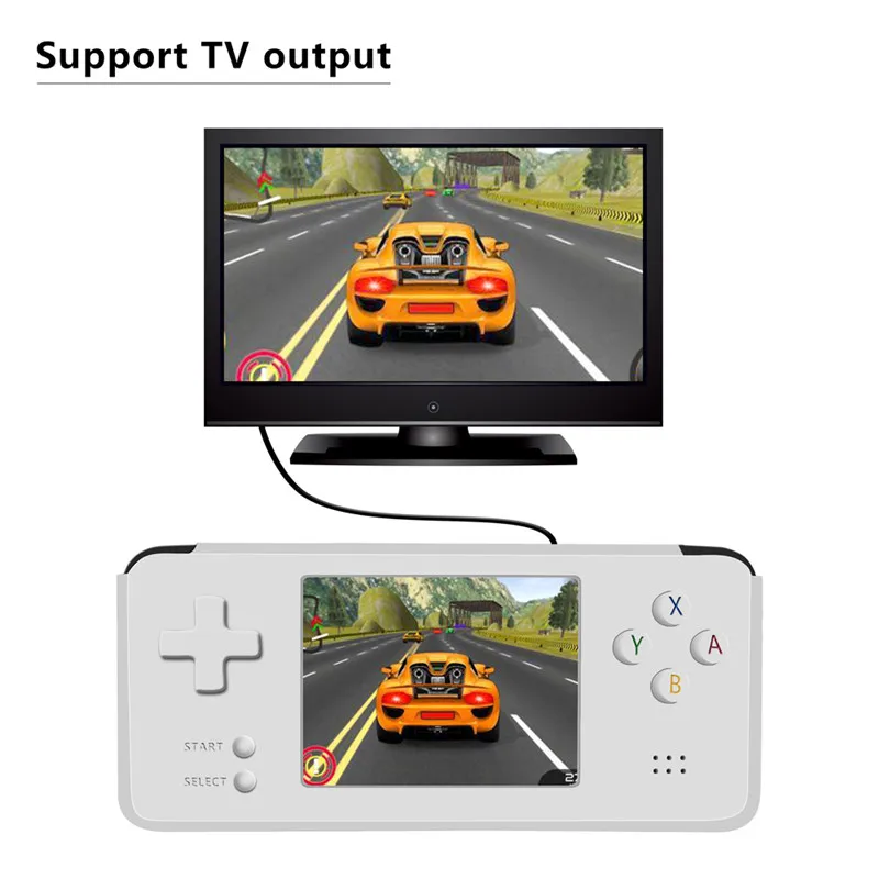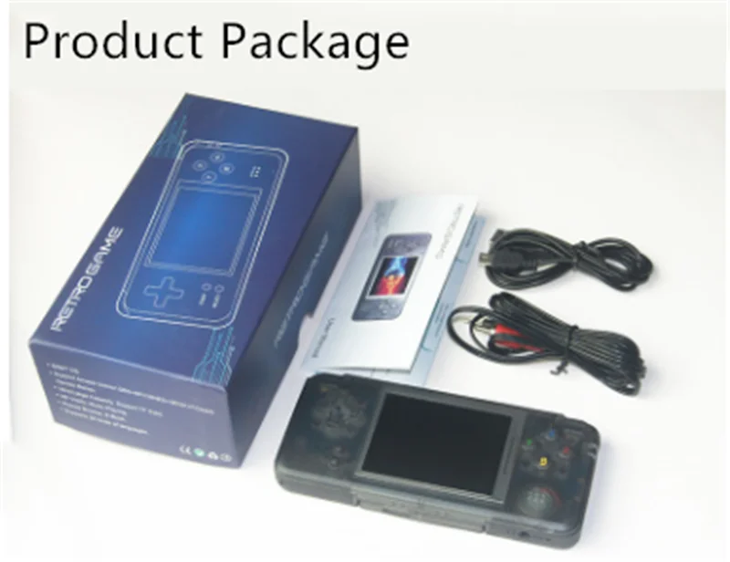 Screen size:3 inches,Battery Type:Built-in batteryStorage capacity:16G Interface Type:USBAdditional features:MP4 video playbackBuilt-in games:3000 modelsSupport music player,TV output,video playerColour:Black,whitePackage Contents:Game console * 1AV cable * 1data cable * 1manual * 1packing box * 1