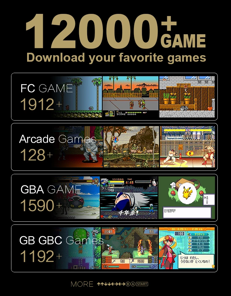 Download your favorite games,12000+gamePS1/CPS/NEO CEO/GBA/NES/SFC/MD/GBC/GB