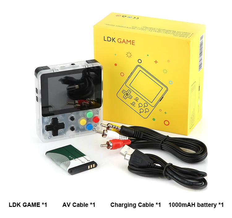 1 * LDK Game Console1 * AV Cable1 * Charging Cable1 * 1000mAh battery