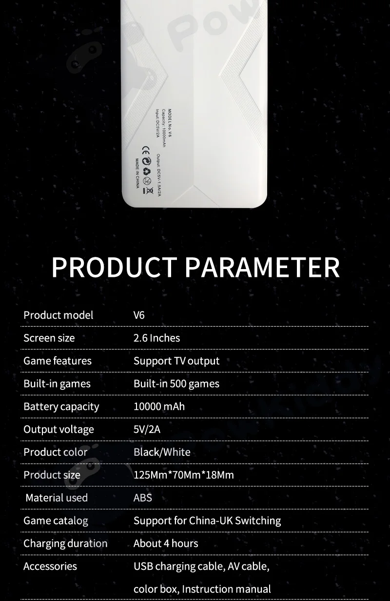 | POWKIDDY V6 Commemorative Edition Handheld Game Console with Mobile Power 10000ma Polymer Battery Core Built-in 500 8-bit Games |