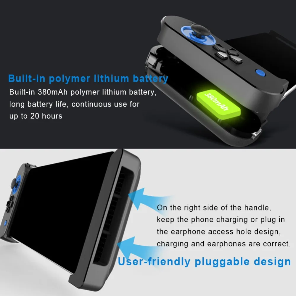 Wireless Bluetooth Handle Wireless Games Joystick Game Accessories For PUBG Compatible with iOS Android Smartphone Tablet 1. High compatibility: This controller is compatible with different sizes of smartphones or tablets of Android (version 3.0 or above) and iOS (version 6.0 or higher). In addition, it is easy to connect. Whether indoor or outdoor, you can enjoy the game anytime and anywhere!